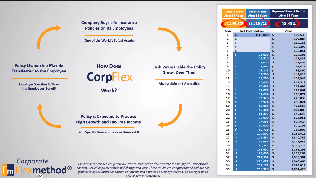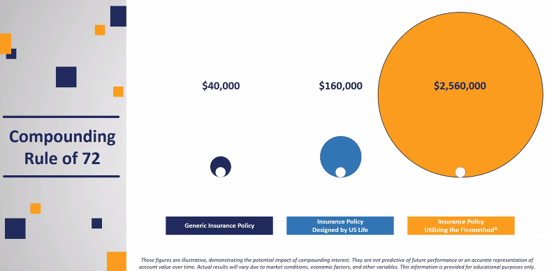 2.Non-Carrier Illustrated Figures – The figures presented in this design are not carrier-illustrated numbers. The Flexmethod is not an insurance product itself; rather, it incorporates insurance products into your overall financial strategy.